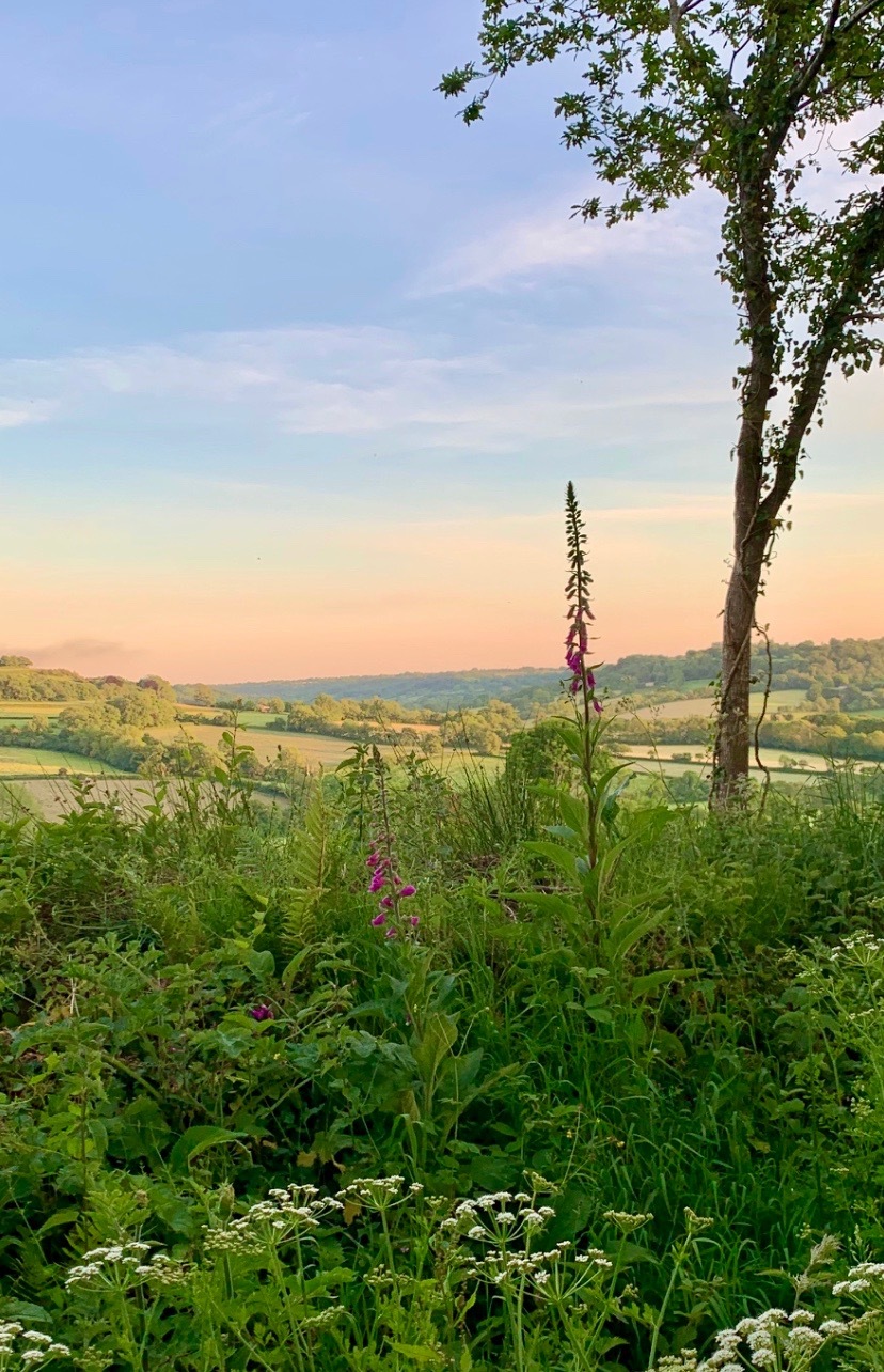 We’re only about a mile and a half from the quiet East Devon town of Honiton, but once you drive up the high-hedged narrow lanes to Stonehayes Farm it really does feel like you’re right out in the sticks. This time of year those hedgerows are a feast for the eyes, brimming over with wild flowers and grasses; cow parsley seems to positively billow, amongst it the vivid pink of campions, the twining lilacy-purple of common vetch, pure white stitchwort and silky yellow buttercups. It makes you smile, it’s like a colourful riot of flowers all vying for their space in the hedges, but my, it’s a wonderful sight! These lanes are quiet so the chances of meeting another car is slim, most days all we hear is the occasional tractor chugging up the hill, so it’s safe enough to go for a wander, which we do sometimes and when we do, we always take the time to stop and stare; we stop at field gates that give you a sudden wide open vista across the valley, at old wooden stiles tucked away in the dappled sunlight beneath the trees. By jove, we’re lucky!
